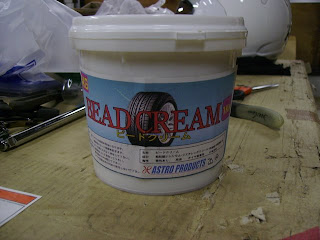 次に新しいタイヤを取り付けます。外すよりも入れる方が簡単だとどこかのブログで見ましたが、僕には同じくらい大変でした。ビードワックス塗りまくりでがんばりましたが、ここでも戦士は傷つきます(涙)。リムプロテクターが無かったらやばいことになってました。買ってよかった。